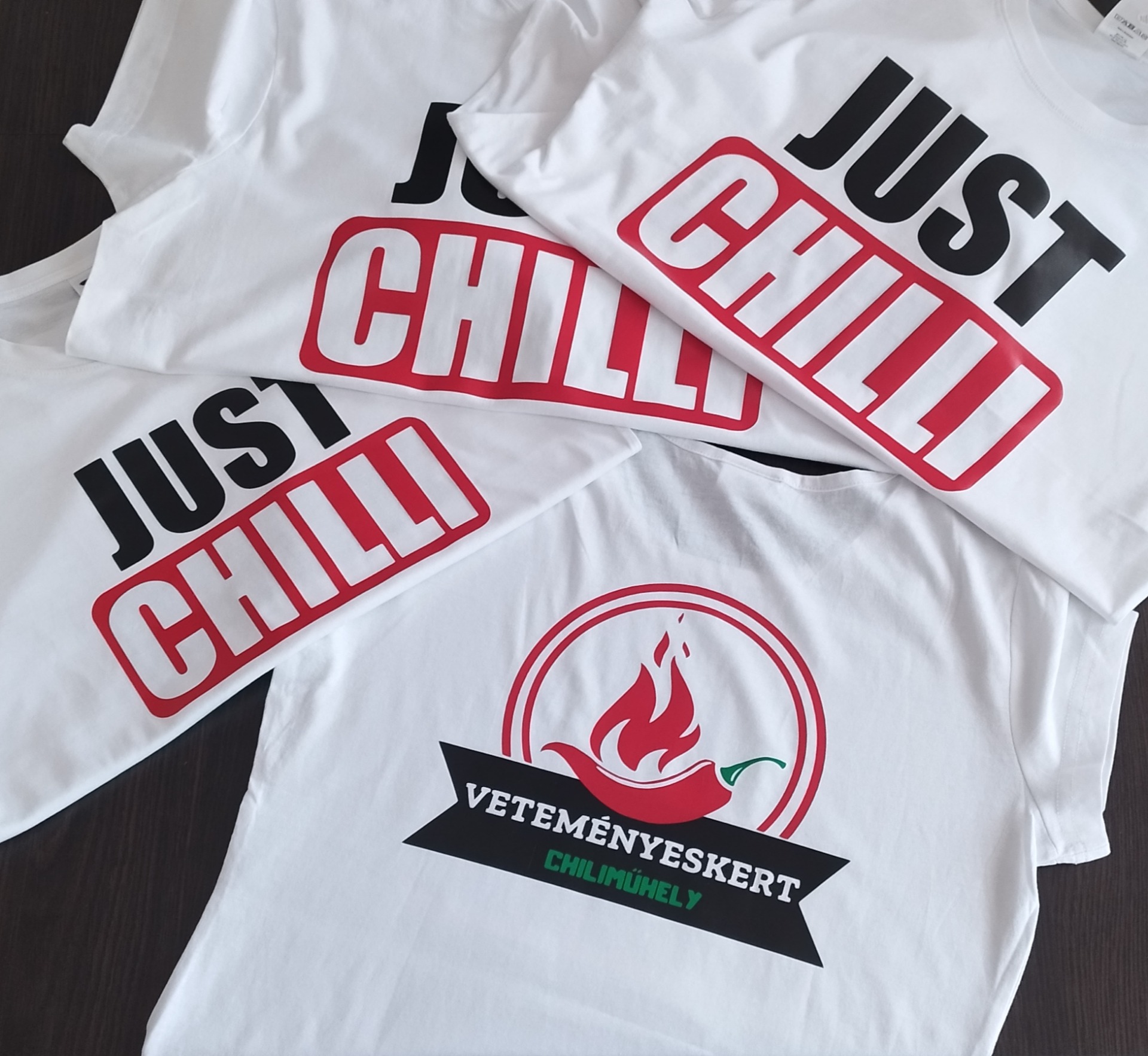 A Chiliműhely számára készültek ismét céges pólók. Elől szóvicces felirattal, a pólók hátára pedig a céges logó lett nyomtatva. Köszönjük az újabb rendelést!
