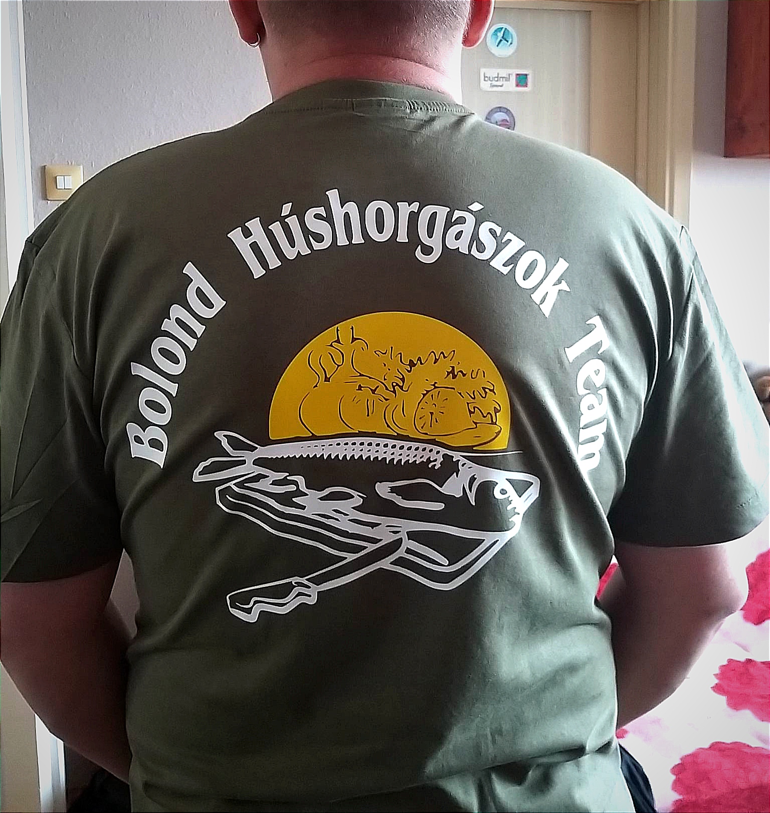 Csapatpóló nyomtatás egy baráti horgász társaság számára a saját elképzeléseik alapján. Malfini khaki zöld pólókra esett a választás, férfi-női fazonban. A megbeszéltek alapján minden pólót külön névre szólóan is feliratoztunk.