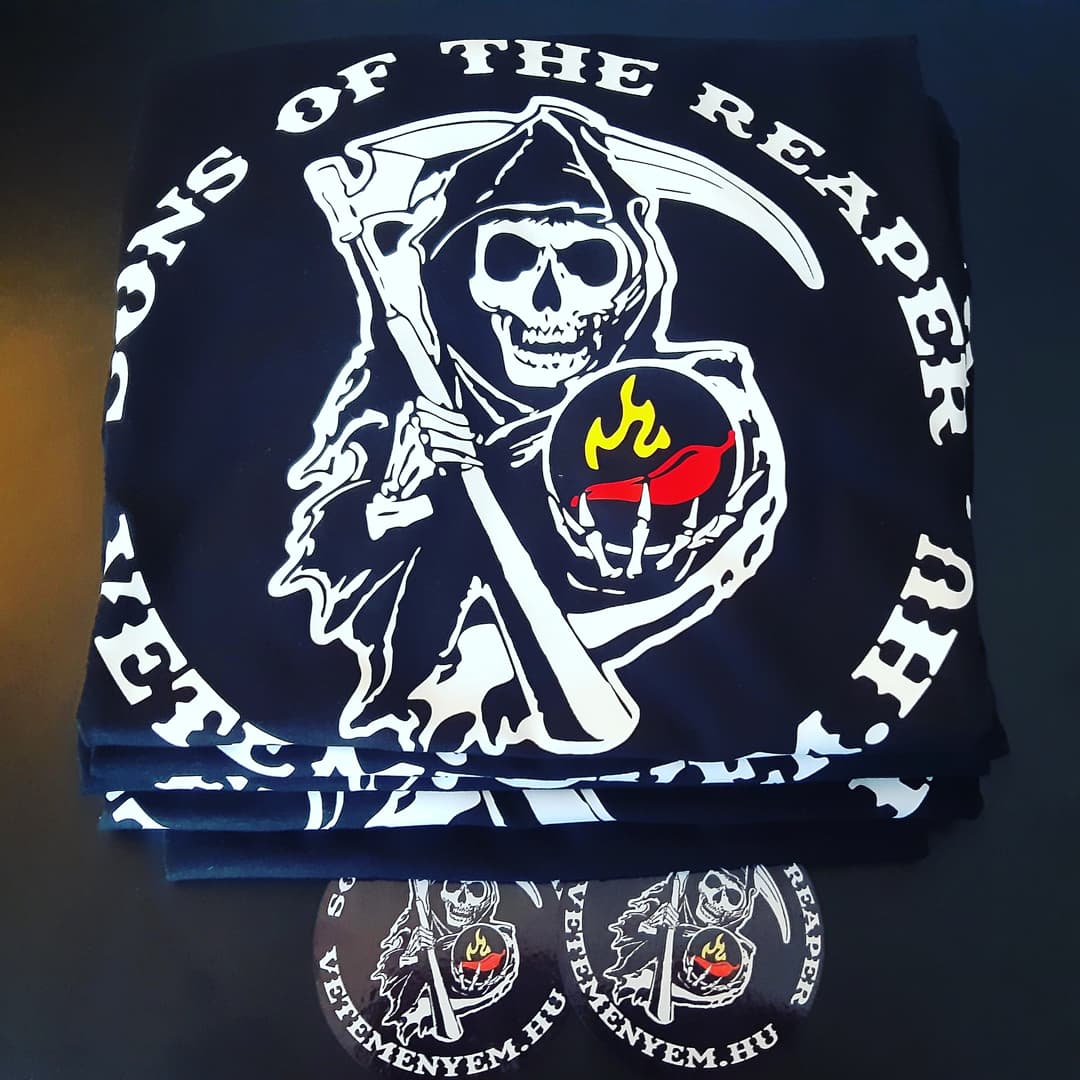 A Megrendelő egy népszerű tv sorozat alapján képzelte el céges pólóit és mi meg is valósítottuk azt. A pólók mellé néhány ugyanolyan mintával nyomtatott egyedi hűtőmágnest adtunk ajándékba. Köszönjük a bizalmat!